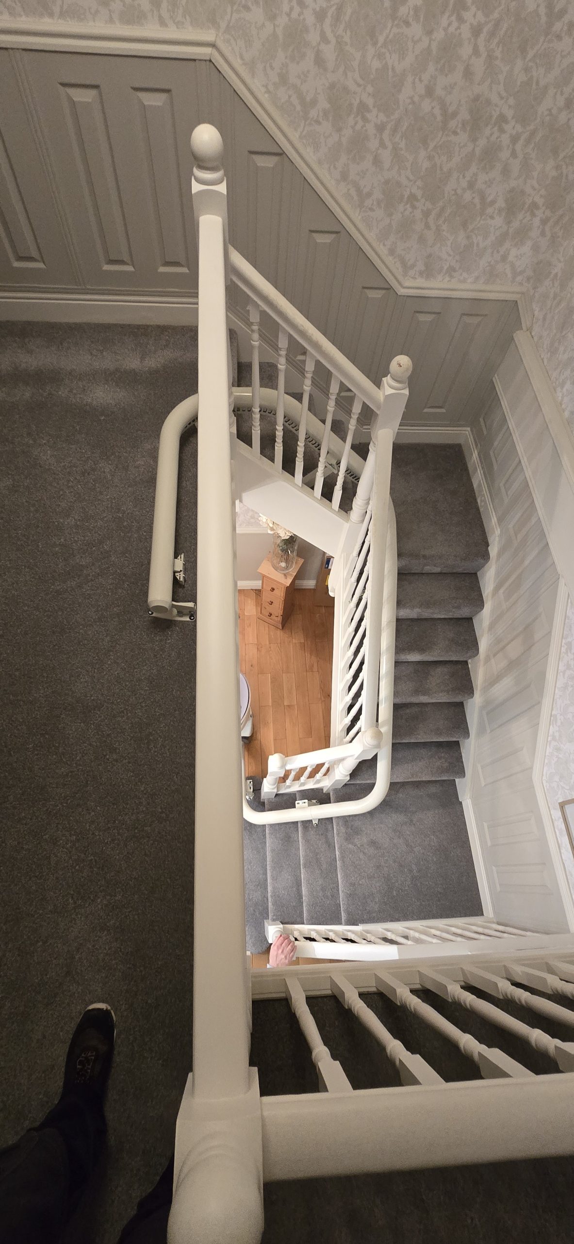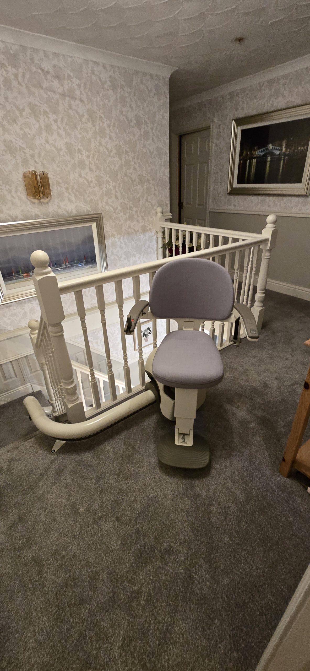 It was clear that the customer didn’t want the upheaval of the structural work that would be needed for a home lift. After taking some measurements and understanding the mobility challenges the customer faced, our engineer could see that a stairlift would work well. The stairs are curved so we recommended the Flow X. It performs well and gives lots of options on colour that the customer appreciated.